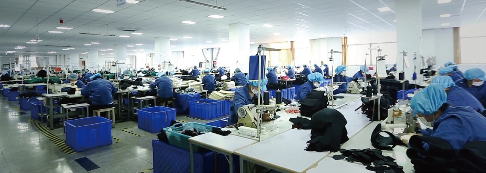 Technical control ability covering whole production process including circular knitting, flat-knitting, laminating, cutting, injection, metal accessory processing, welding, printing, sewing and packing.
